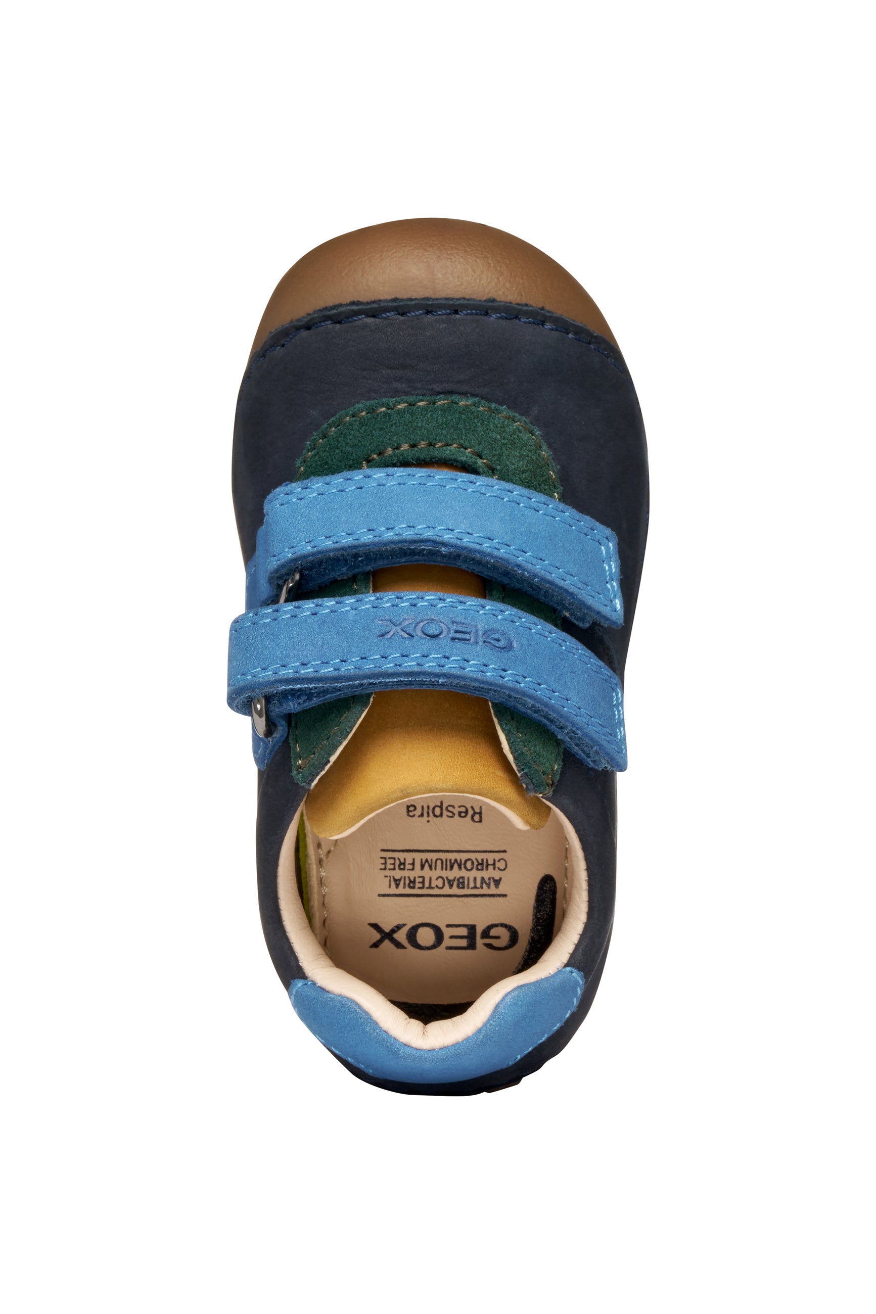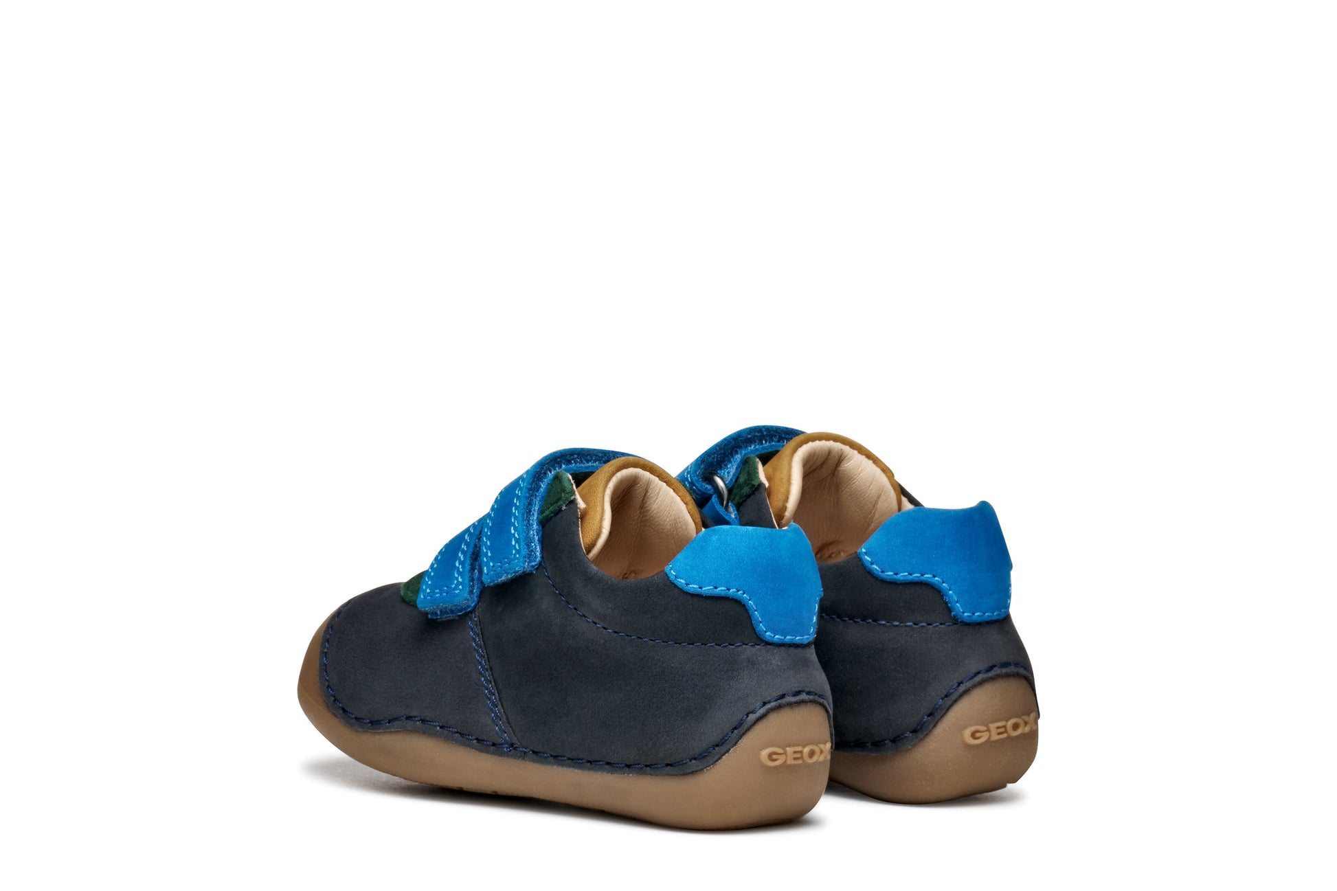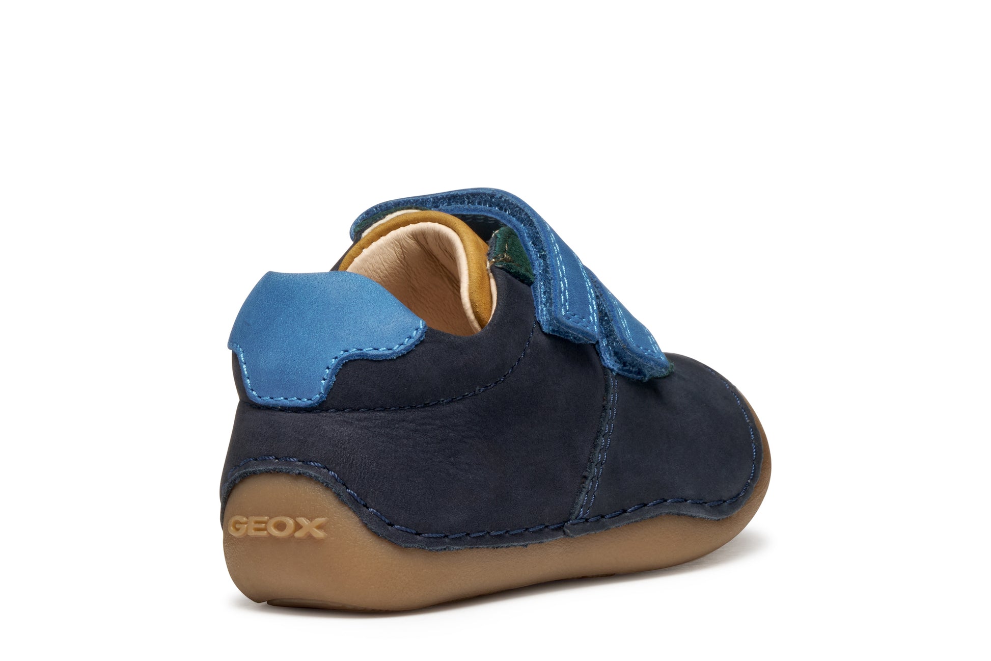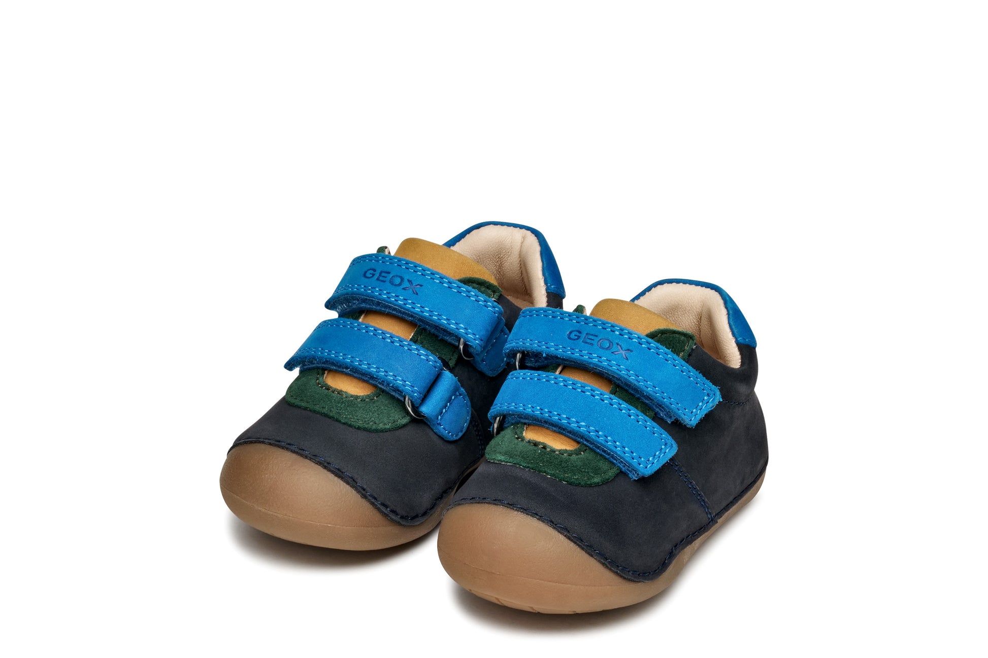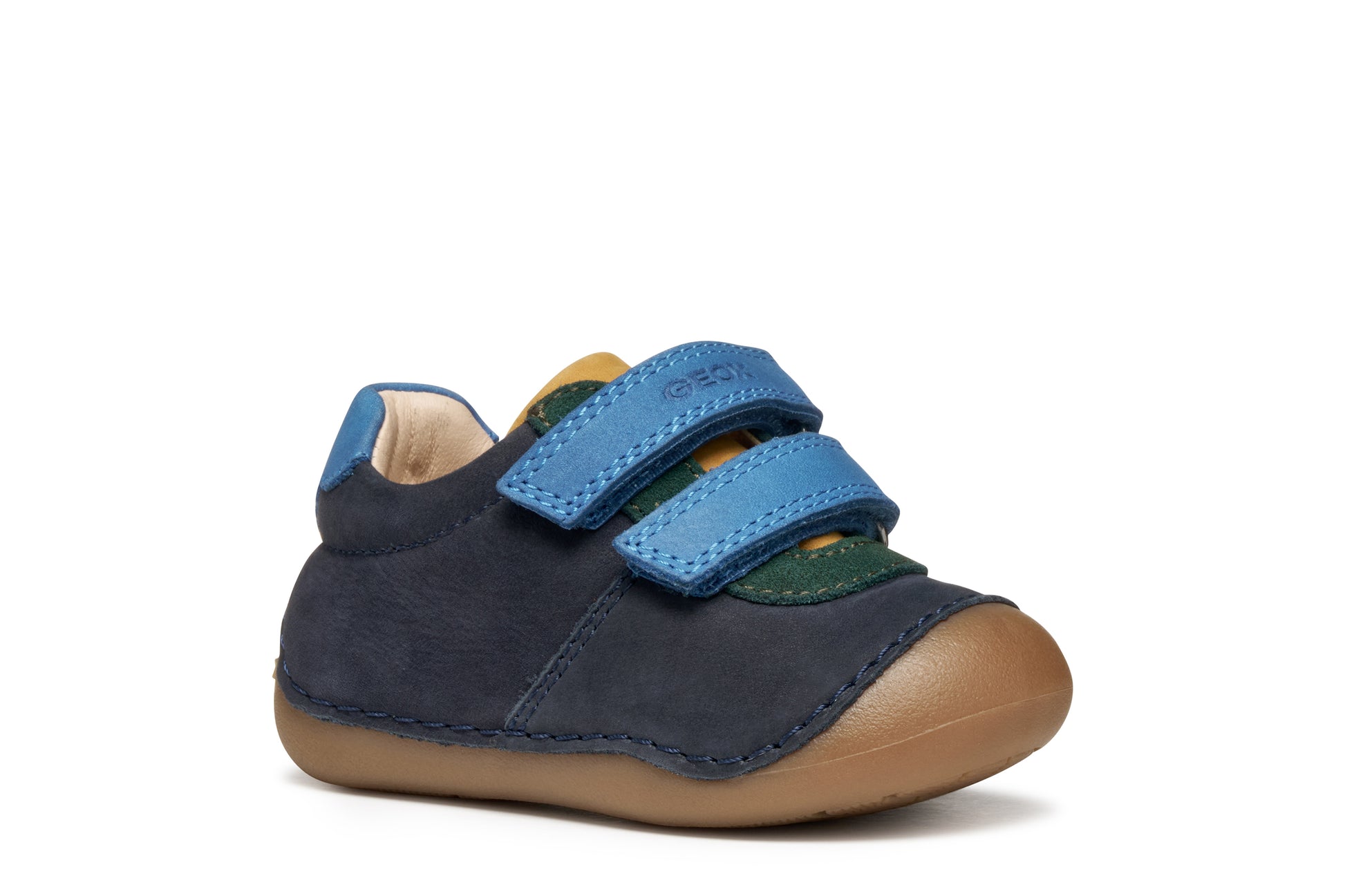 A beautifully soft pre walker or first shoe for baby boys with a snug fit and stable design that will keep kids steady as they start to crawl and toddle. This version of Tutim has been crafted from supple nubuck and suede in a navy-blue palette with multicoloured accents and delivers the utmost flexibility. Tutim provides little explorers with protection and comfort, gently supporting little feet as they move around.