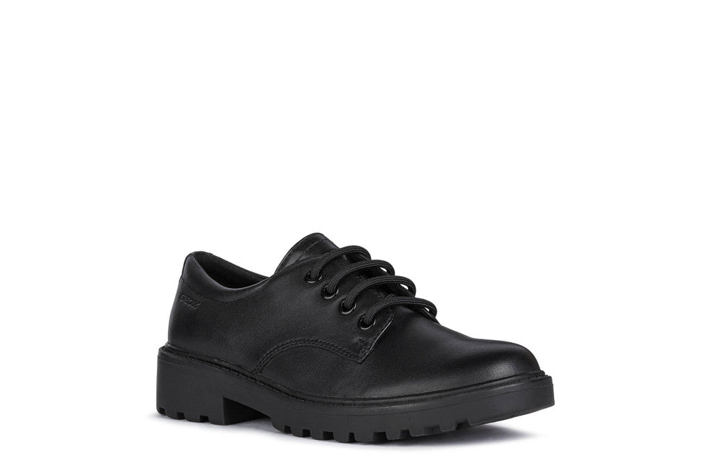 Girl's school-perfect smooth black leather Derby lace-up. Breathable and comfortable, Casey has a formal aesthetic, it will be perfect for school and special events alike.