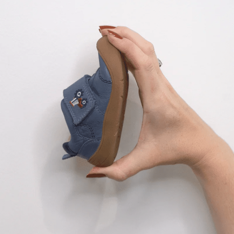 These Harvest shoes in tan leather are the perfect wear-with-anything first walkers. Smart yet casual, and in soft denim blue to complement every outfit. The padded ankles and soft insoles give round-the-clock comfort.