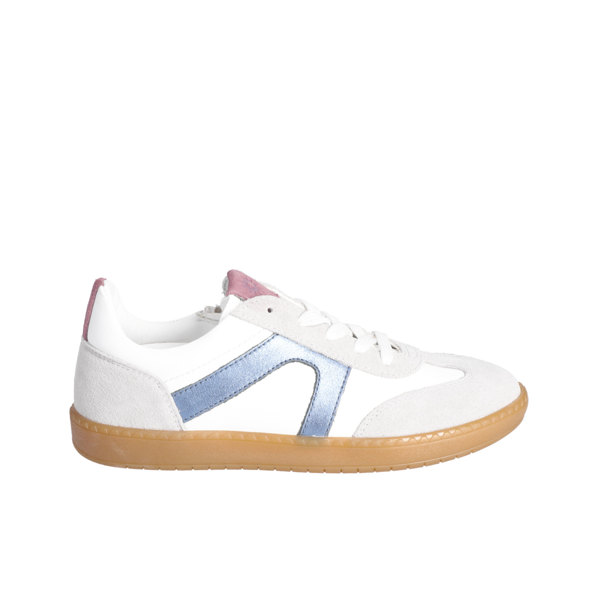 London White and Stone Blue Leather Sneaker With Zip And Lace