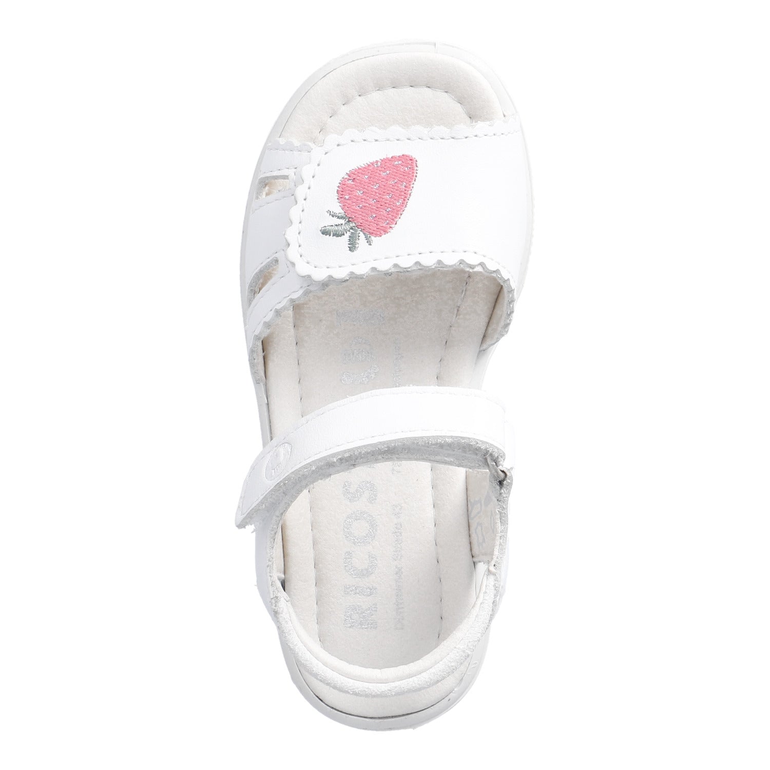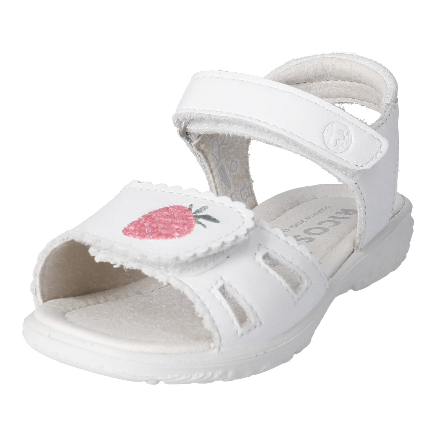 Classic full grain leather girl's sandal with an embroidered strawberry motif, making it perfect for summer days out.