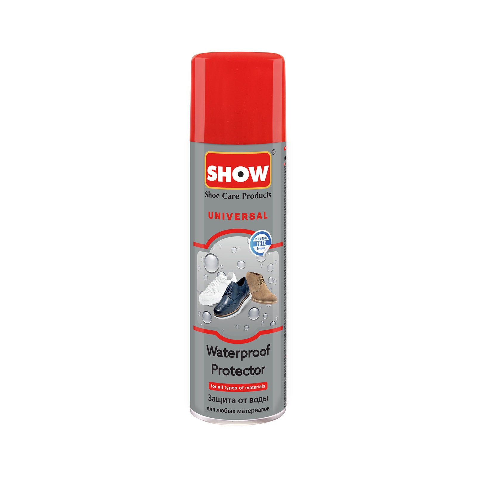SHOW® Universal Waterproof Protector Spray; with its special formula, forms an invisible waterproof layer on leather and textile surfaces. Provides superior protection against adverse effects of rain, extending the natural life of your shoes. It provides lasting protection, preventing water and oil stains forming on the shoe surfaces. Provides protection from rain and normal water for 7 days.